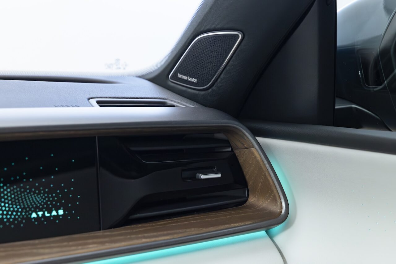 One the inside it has real wood decor. There is a new dash with a choice of 12.9 or 15 inch screens. The front passengers can opt for massaging seats. Best of all, the new Atlas has two Qi2 MagSafe wireless phone chargers. Yes! You phone will stay put when it charges.
